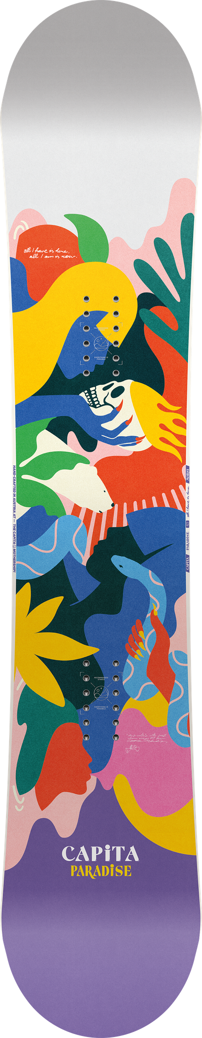 De Capita Paradise is een directional twin, dat zorgt dus voor een freestyle shape maar die ook goed op de piste kan. Door de positieve camber onder je voeten kun je kracht behouden terwijl de nose en tail omhoog worden gebracht om je goed de poeder door te helpen. Ben jij het liefst in het park en duik je daarna de poeder in? Dan is dit board zeker wat voor jou!