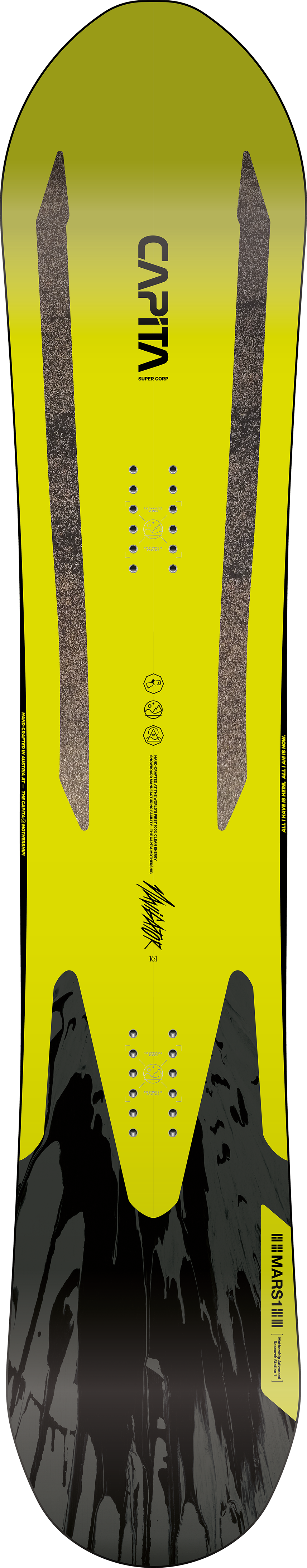 The Navigator van Capita is het poederboard dat altijd leuk blijft en nooit teleursteld. De nose is breder en de tail is smaller waardoor je een goede float hebt op het poedersneeuw. Dit board maakt zware poederdagen een van de leukste en gaafste ervaringen op het poeder.