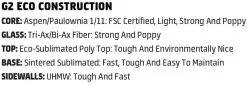 De laag Tri-Ax fiberglass zorgt voor extra pop en de laag Bi-Ax fiberglass zorgt voor extra directe krachtoverbrenging van de bindingen richting de staalkanten.