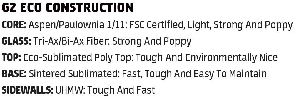 De G3 Eco kern van Lib Tech bestaat voor de helft uit Aspen hout. Om het snowboard lichter te maken, liggen er 2 grote banen met Paulownia hout in de kern.